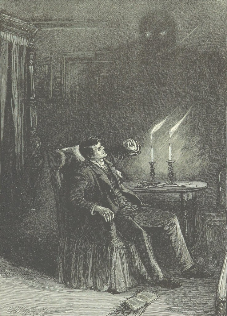 He spoke loudly, and with a certain mocking defiance, seeming to think the phantom he addressed would reply; but when he stopped at the end of his sentence, no sound came through the stillness. There was utter silence in the room – silence broken only by the falling of the cinders on the hearth and the breathing of his dog.